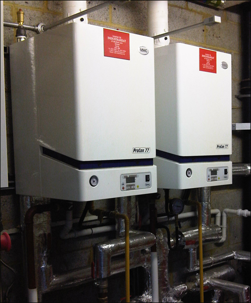 Two new MHG Procon 77 wall mounted boilers were installed to provide a total heat output of 150kw. The existing flue dilution system was removed and new room sealed concentric flues installed for each boiler. The hydraulic systems were modified to suit relatively easily and a new controls panel and BMS controller installed to take care of the new systems, including zoning controls for all three floors. Significant savings have been made and comfort control within the building is now better managed.